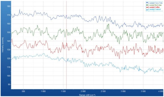 The vibrational characteristics of composite resins were evaluated before and after immersion in acidic liquids (coffee, red wine, and Coca-Cola) using the LabRAM Soleil™ Raman Microscope (HORIBA Scientific, Edison, NJ, USA), equipped with the LabSpec 6 Spectroscopy Suite for Raman spectroscopy analysis. The system operated with a 532 nm laser and featured QScan™ lightsheet confocal imaging, ensuring high spatial resolution, along with SmartSampling™ technology for ultrafast spectral imaging.
