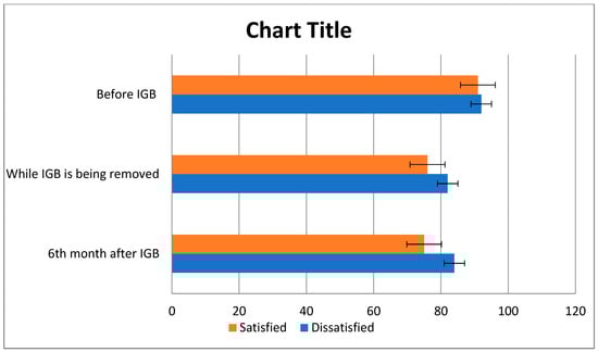 In terms of the duration of IGB treatment, there was no statistically significant difference between those who were satisfied with the procedure and those who were not (