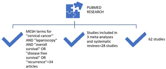 - Zhao, Y.; Hang, B.; Xiong, G.W.; Zhang, X.W. Laparoscopic Radical Hysterectomy in Early Stage Cervical Cancer: A Systematic Review and Meta-Analysis. J. Laparoendosc. Adv. Surg. Tech. 2017, 27, 1132–1144. [Google Scholar] [CrossRef]