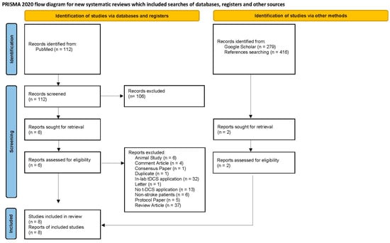 - Ko, M.H.; Yoon, J.Y.; Jo, Y.J.; Son, M.N.; Kim, D.S.; Kim, G.W.; Won, Y.H.; Park, S.H.; Seo, J.H.; Kim, Y.H. Home-Based Transcranial Direct Current Stimulation to Enhance Cognition in Stroke: Randomized Controlled Trial. Stroke 2022, 53, 2992–3001. [Google Scholar]