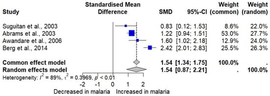 3.8. Meta-Analysis of MIP-1α/MIP-1β in Malaria Cases and Uninfected Individuals