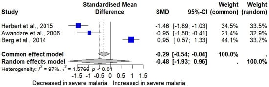 3.9. Meta-Analysis of MIP-1α/MIP-1β in Severe and Uncomplicated Malaria Cases