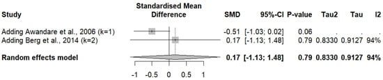 - Higgins, J.P.T.; Thompson, S.G.; Deeks, J.J.; Altman, D.G. Measuring inconsistency in meta-analyses. BMJ 2003, 327, 557–560. [Google Scholar]