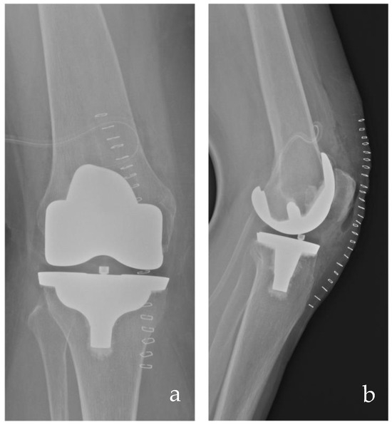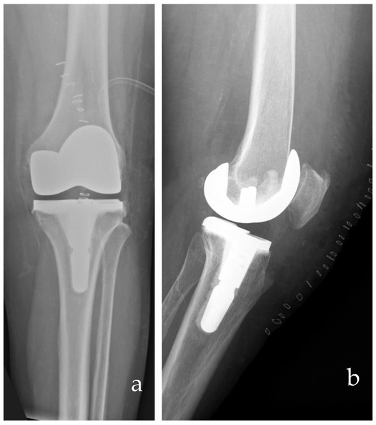 - Dehl, M.; Bulaïd, Y.; Chelli, M.; Belhaouane, R.; Gabrion, A.; Havet, E.; Mertl, P. Total Knee Arthroplasty with the Medial-Pivot Knee System: Clinical and Radiological Outcomes at 9.5 Years’ Mean Follow-Up. Orthop. Traumatol. Surg. Res. 2018, 104, 185–191. [Google Scholar] [CrossRef]