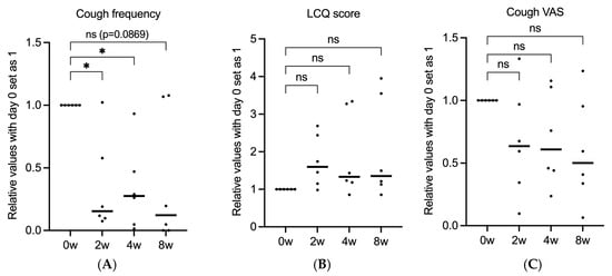 2.3. LCQ Score, Cough VAS, and Cough Frequency