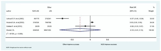 APA StylePiccialli, F., Fiore, M., Giurazza, R., Falso, F., Simeon, V., Chiodini, P., Russo, D., & Laino, L. (2025). Efficacy and Safety of Nitrous Oxide (N2O) Inhalation Sedation Compared to Other Sedative Agents in Dental Procedures: A Systematic Review with Meta-Analysis. Medicina, 61(5), 929. https://doi.org/10.3390/medicina61050929