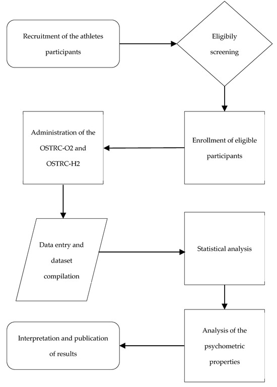 - Drole, K.; Steffen, K.; Paravlic, A. Slovenian Translation, Cross-Cultural Adaptation, and Content Validation of the Updated Oslo Sports Trauma Research Center Questionnaire on Health Problems (OSTRC-H2). Orthop. J. Sports Med. 2024, 12, 23259671241287767. [Google Scholar] [CrossRef] [PubMed]