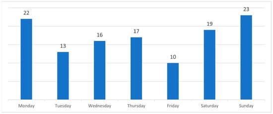 A number of admissions of patients with food bolus obstruction each day of a week.