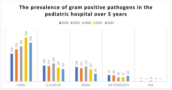 The prevalence of gram-positive Cocci in the pediatric hospital over 5 years.