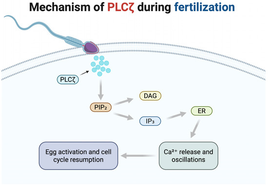 - Nomikos, M.; Swann, K.; Lai, F.A. Starting a new life: Sperm PLC-zeta mobilizes the Ca2+ signal that induces egg activation and embryo development: An essential phospholipase C with implications for male infertility. Bioessays 2012, 34, 126–134. [Google Scholar] [CrossRef]