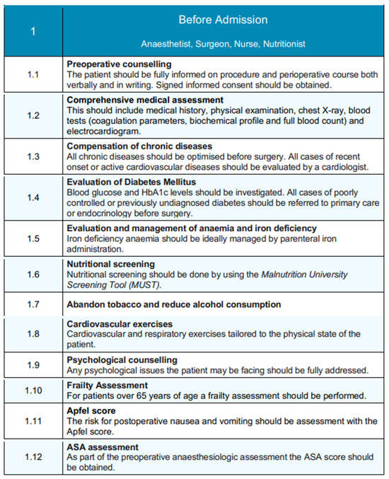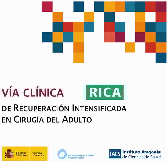 - Ramirez, J.M.; Ruiz-López, P.; Gurumeta, A.A. CLINICAL PATHWAY Recovery Intensification for Optimal Care in Adult’s Surgery. Available online: https://www.researchgate.net/publication/354723117 (accessed on 24 April 2023).