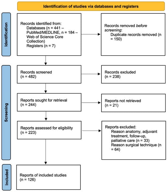 This umbrella review systematically evaluated existing guidelines, systematic reviews, meta-analyses, and consensus documents addressing multimodal preoperative management of rectal cancer [4,5]. A literature search was conducted using the Web of Science and PubMed/MEDLINE databases. The search strategy used in the Web of Science Core Collection was: ((TI = (rectal cancer)) OR TI = (rectal adenocarcinoma) OR TI = (rectal neoplasm)) AND ((TI = (guideline) OR TI = (guidance))).