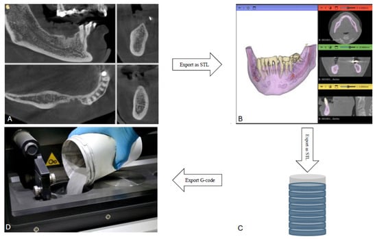 - The first step is to analyze the patient bone condition using cone beam computed tomography (CBCT), which provides the surgeon with a converted Digital Imaging and Communications in Medicine (DICOM) file format (Figure 2A).