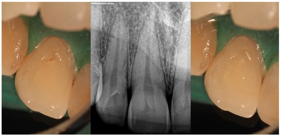 - Ricucci, D.; Milovidova, I.; Siqueira, J.F., Jr. Unusual location of dens invaginatus causing a difficult-to-diagnose pulpal involvement. J. Endod. 2020, 46, 1522–1529. [Google Scholar] [CrossRef] [PubMed]