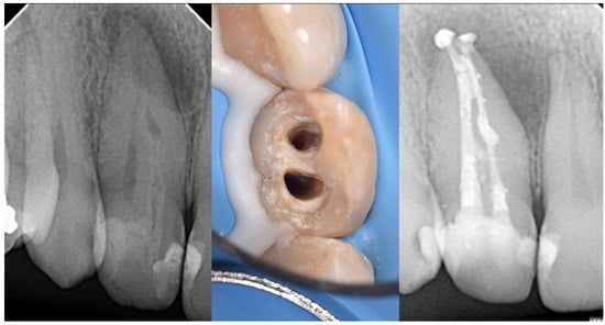- Bishop, K.; Alani, A.J. Dens invaginatus. Part 2: Clinical, radiographic features and management options. Int. Endod. J. 2008, 41, 1137–1154. [Google Scholar] [CrossRef] [PubMed]