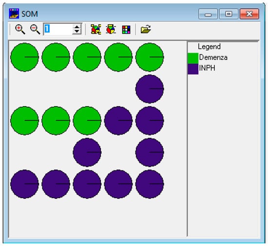 Given the reduced number of records (19) out of 25 “virtual” classes, SOM located each subject in a class. Only in one case did two subjects share the same class (in the output, this was class 5.2; the subjects were INPH9 and INPH7).