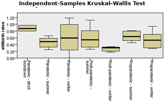 When seasonality of stillbirth was analyzed, a significant difference in stillbirth rate could be observed during the strict lockdown period compared to other periods before and after the pandemic (p = 0.05), as shown in Figure 16.