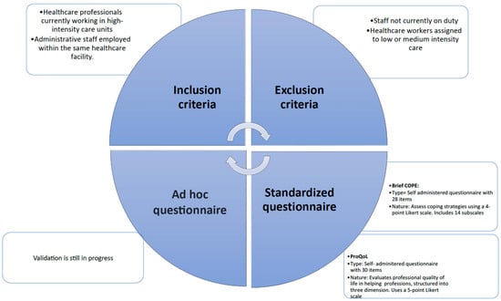 - Rink, L.C.; Oyesanya, T.O.; Adair, K.C.; Humphreys, J.C.; Silva, S.G.; Sexton, J.B. Stressors Among Healthcare Workers: A Summative Content Analysis. Glob. Qual. Nurs. Res. 2023, 10, 23333936231161127. [Google Scholar] [CrossRef] [PubMed]