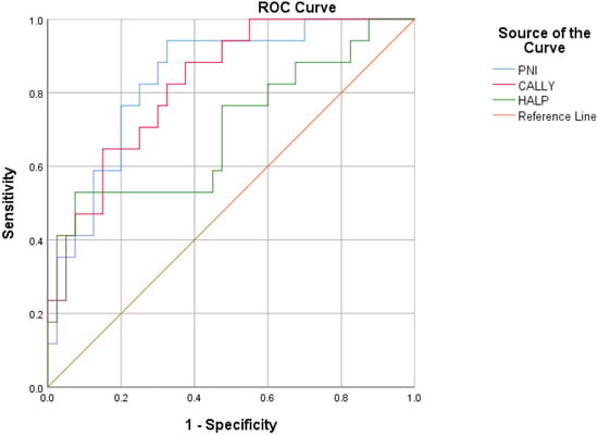 - Shiraishi, T.; Nonaka, T.; Tominaga, T.; Takamura, Y.; Oishi, K.; Hashimoto, S.; Noda, K.; Ono, R.; Hisanaga, M.; Takeshita, H.; et al. The C-reactive protein-albumin-lymphocyte (CALLY) index is a useful predictor of postoperative complications in patients with a colonic stent for obstructive colorectal cancer: A Japanese multicenter study. Surg. Today 2025, 55, 502–509. [Google Scholar] [CrossRef]