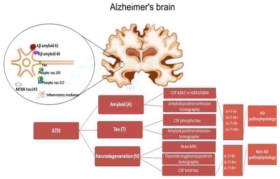 - Jack, C.R.; Bennett, D.A.; Blennow, K.; Carrillo, M.C.; Dunn, B.; Haeberlein, S.B.; Holtzman, D.M.; Jagust, W.; Jessen, F.; Karlawish, J.; et al. NIA-AA Research Framework: Toward a Biological Definition of Alzheimer’s Disease. Alzheimer’s Dement. 2018, 14, 535–562. [Google Scholar] [CrossRef] [PubMed]