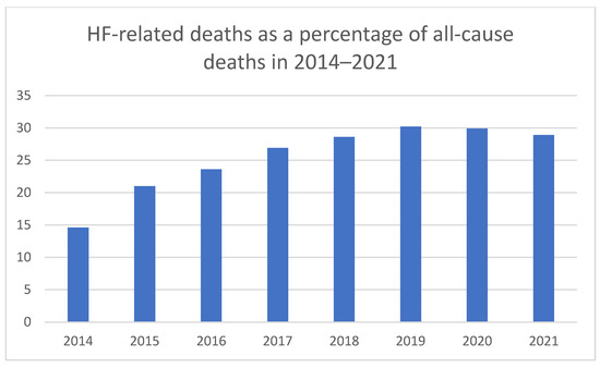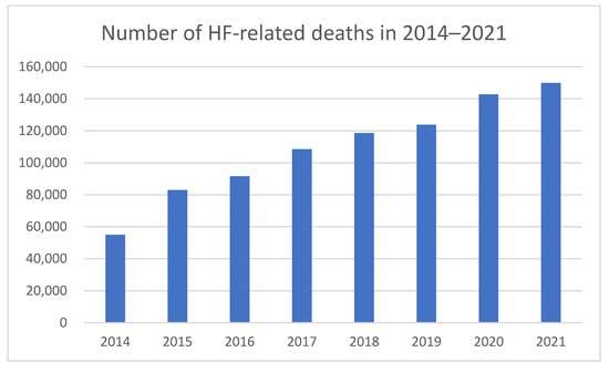 - Kałużna-Oleksy, M. (Ed.) Heart Failure in Poland. In Reality, Costs, Suggestions for Improving the Situation [Article in Polish]; Marfan Polska: Warsaw, Poland, 2020; Available online: https://marfan.org.pl/wp-content/uploads/2021/01/Failure%CC%81c%CC%81RAPORT-A4-2021-NET.pdf (accessed on 25 January 2022).