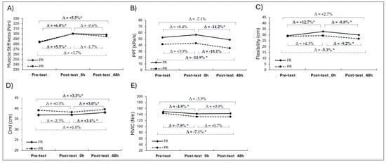- Reiner, M.M.; Glashüttner, C.; Bernsteiner, D.; Tilp, M.; Guilhem, G.; Morales-Artacho, A.; Konrad, A. A comparison of foam rolling and vibration foam rolling on the quadriceps muscle function and mechanical properties. Eur. J. Appl. Physiol. 2021, 121, 1461–1471. [Google Scholar] [CrossRef]