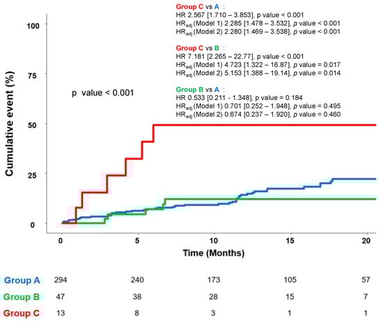 | A (n = 294) | B (n = 47) | C (n = 13) | p-Value | Post Hoc | |