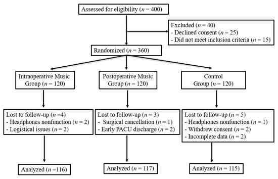 APA StyleLee, H., Park, E., Kim, B., & Lee, C. (2025). The Differences Between Intraoperative- and Postoperative-Preferred Music Effects on Emergence Delirium in Elderly Patients: A Single-Center, Prospective Randomized Controlled Trial. Medicina, 61(9), 1586. https://doi.org/10.3390/medicina61091586
