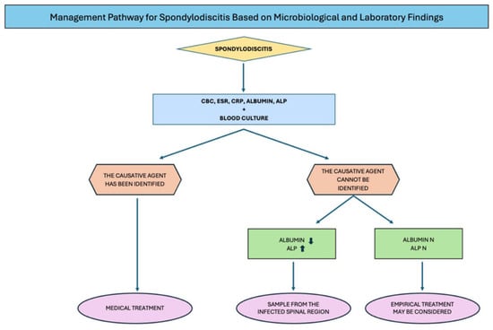 Exclusion criteria included patients under 18 years of age, pregnant women, those with polymicrobial growth in blood and/or tissue cultures, cases of SD secondary to tuberculosis or brucellosis, patients who received empirical treatment but showed no clinical or laboratory response, those with non-infectious vertebral involvement due to trauma, malignancy, or rheumatologic diseases, and patients with incomplete follow-up or missing clinical data.
