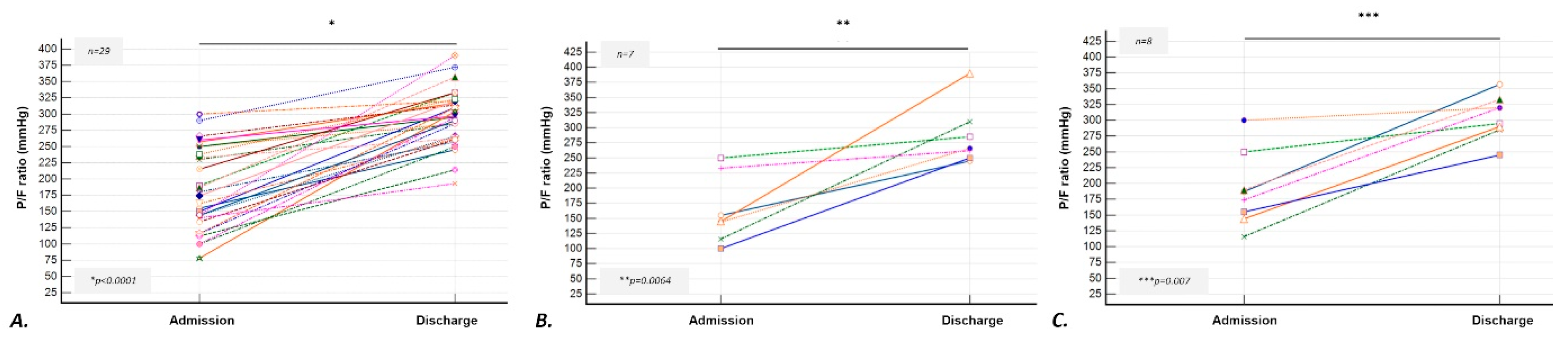 3.3. IVIG Was Associated with Favorable Clinical Outcomes in Patients with AE-fILDs
