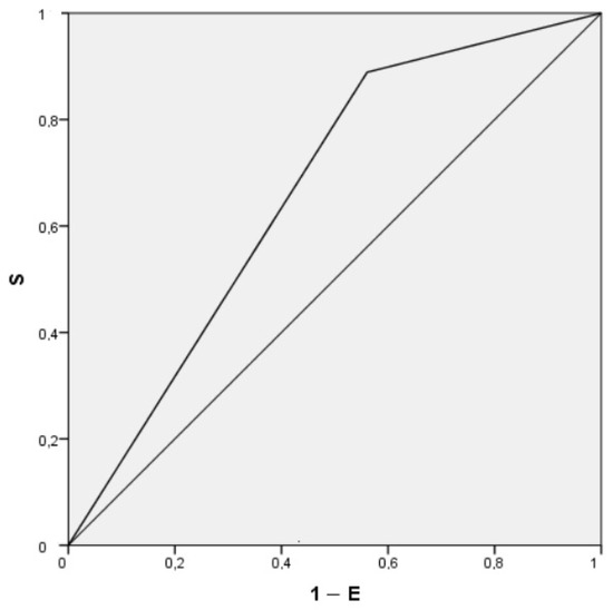 The Air Test showed acceptable discriminative ability, with an area under the ROC curve (AUC) of 0.664 (95% CI: 0.580–0.746; p = 0.002), indicating statistically significant performance above chance (Figure 2). Using the optimal cutoff point, the sensitivity was 56%, specificity 11%, positive predictive value (PPV) 78.9%, and negative predictive value (NPV) 75%.