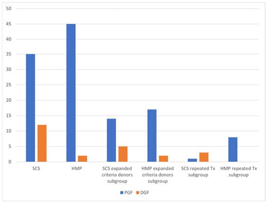 After propensity score matching, our analysis confirmed a statistically significant difference in the primary outcome, the incidence of Delayed Graft Function (DGF), which was significantly lower in the HMP group compared to the SCS group (4.3% vs. 25.5%, p = 0.013).