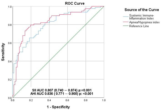 Effect of systemic immune inflammation index and apnea/hypopnea index on repolarization heterogeneity (ROC analysis).
