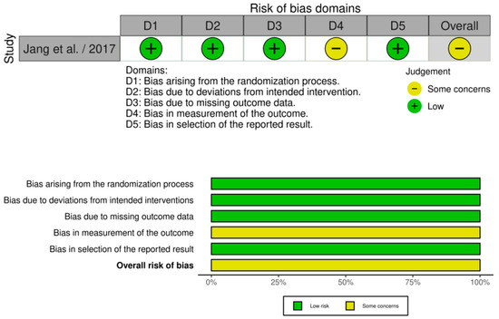 According to RoB 2, one study revealed “some concerns” bias [20] (Figure 3).