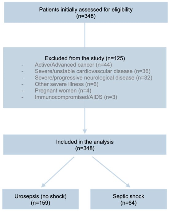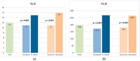 Chicago/Turabian StyleDrăgoescu, Petru Octavian, Bianca Liana Grigorescu, Andreea Doriana Stănculescu, Andrei Pănuș, Nicolae Dan Florescu, Monica Cara, Maria Andrei, Mihai Radu, George Mitroi, and Alice Nicoleta Drăgoescu. 2025. "The Diagnostic and Prognostic Value of Neutrophil-to-Lymphocyte and Platelet-to-Lymphocyte Ratios in Urosepsis" Medicina 61, no. 9: 1713. https://doi.org/10.3390/medicina61091713