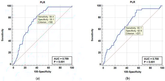| PLR | 0.759 | 0.0328 | 0.698 to 0.814 | 0.700 | 0.0423 | 0.636 to 0.760 |