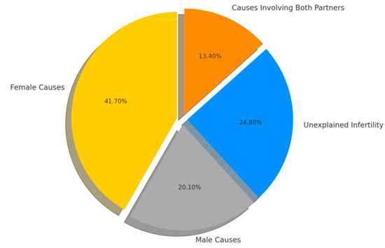 Distribution of infertility causes in the study population. In this study, the categories were mutually exclusive: ‘female causes’ referred to infertility attributed only to female factors, ‘male causes’ to infertility attributed only to male factors, while ‘both partners’ denoted cases where factors were identified in both partners.