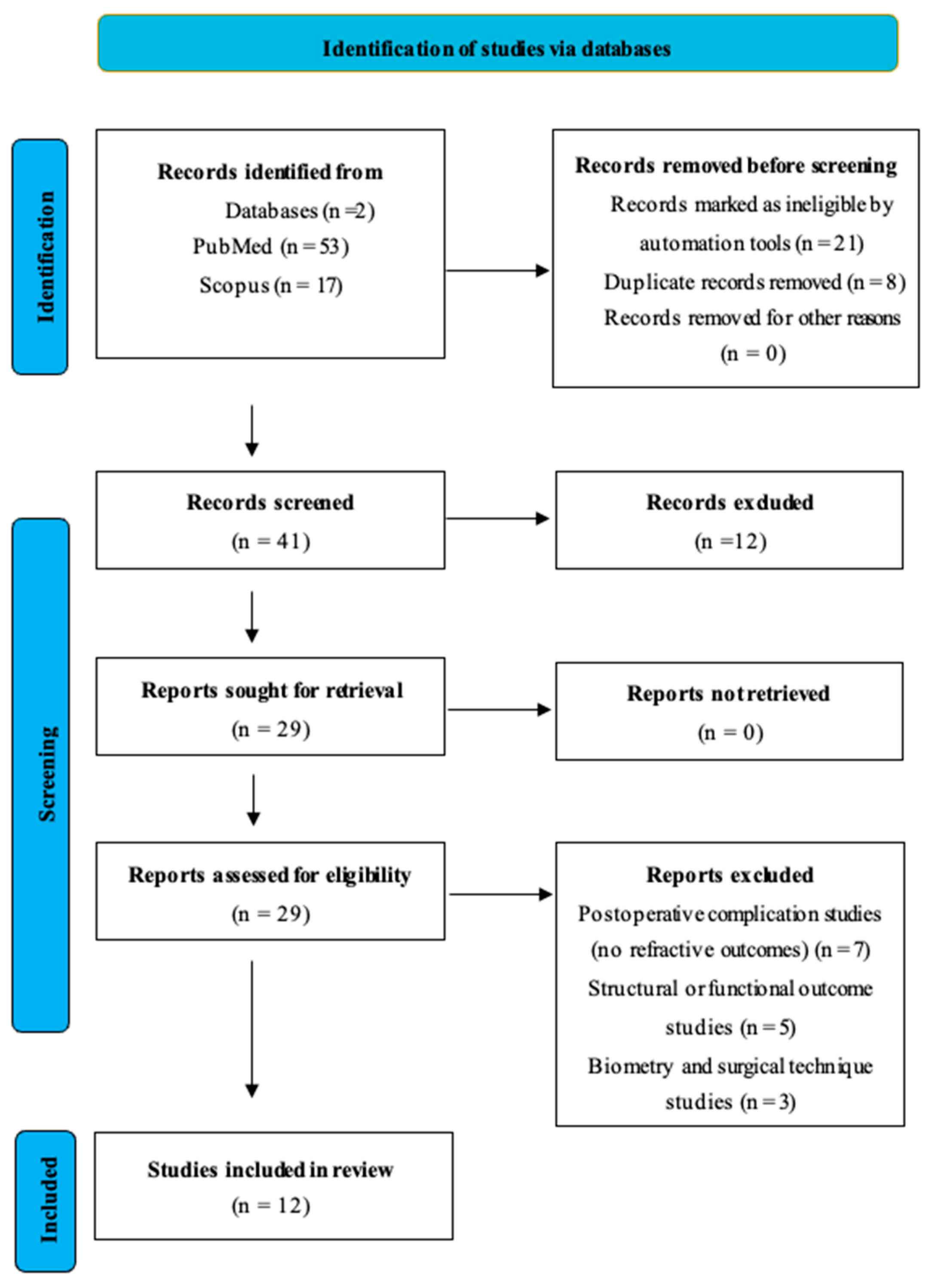 - Studies focusing solely on postoperative complications (e.g., glaucoma, retinal detachment) without refractive data.