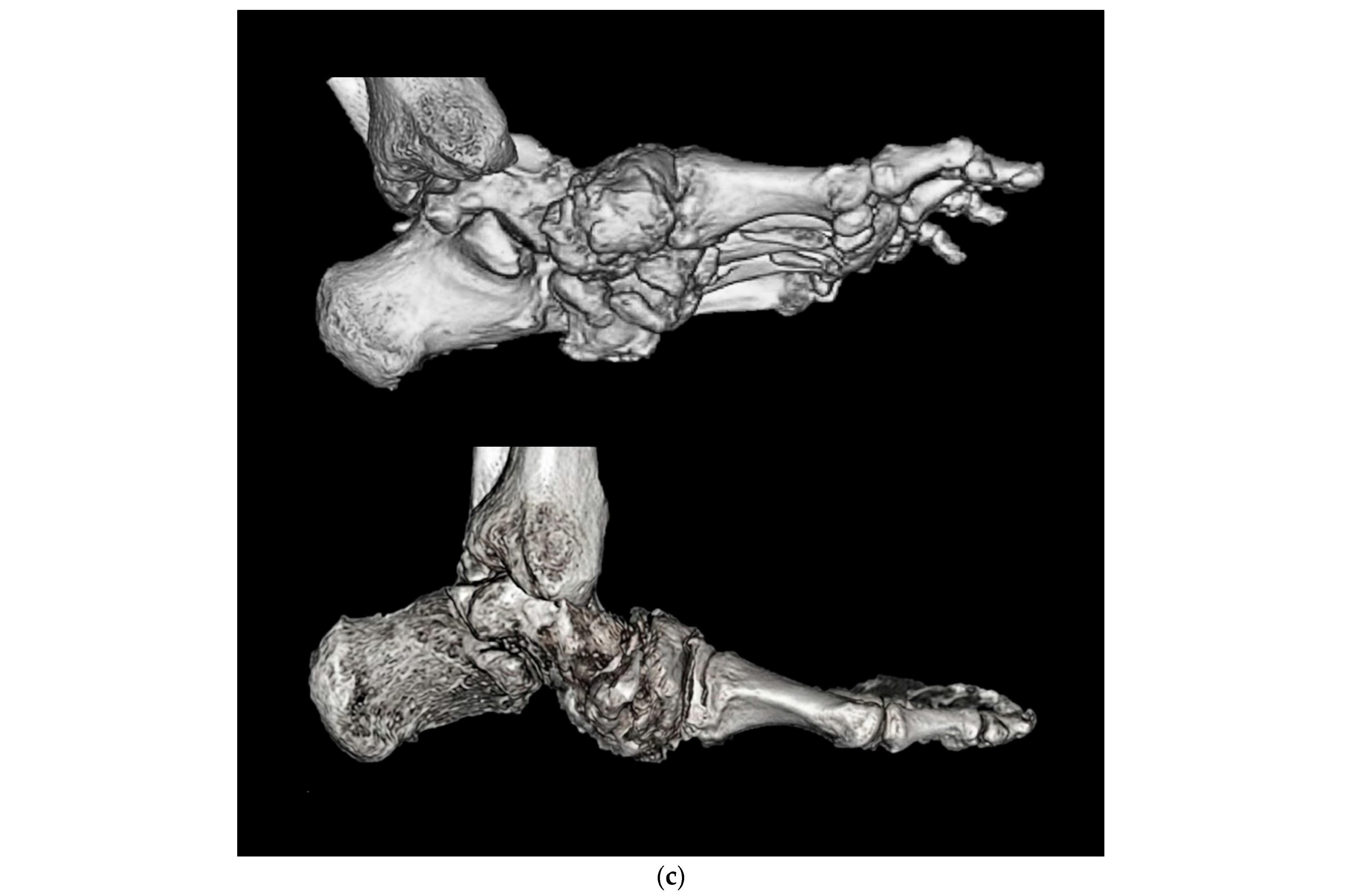 - Rojas, E.O.; Barbachan Mansur, N.S.; Dibbern, K.; Lalevee, M.; Auch, E.C.; Schmidt, E.; Vivtcharenko, V.; Li, S.; Phisitkul, P.; Femino, J.E.; et al. Weightbearing Computed Tomography for Assessment of Foot and Ankle Deformities: The Iowa Experience. Foot Ankle Orthop. 2022, 7, 2473011421S00419. [Google Scholar] [CrossRef]