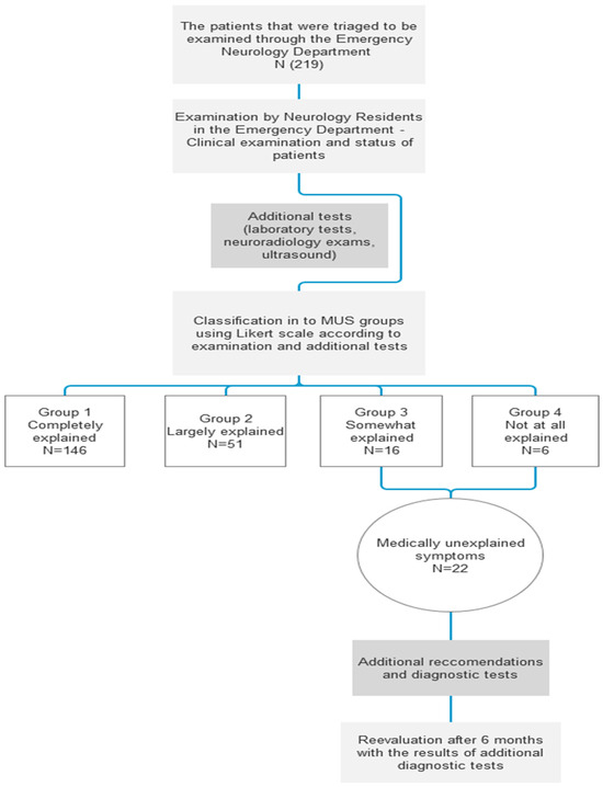Based on the neurologist’s opinion and corresponding exams and tests, all the patients were divided into four groups (MUS 1, 2, 3, and 4) according to the level of correlation between the presenting symptoms and the possibility of organic disease.