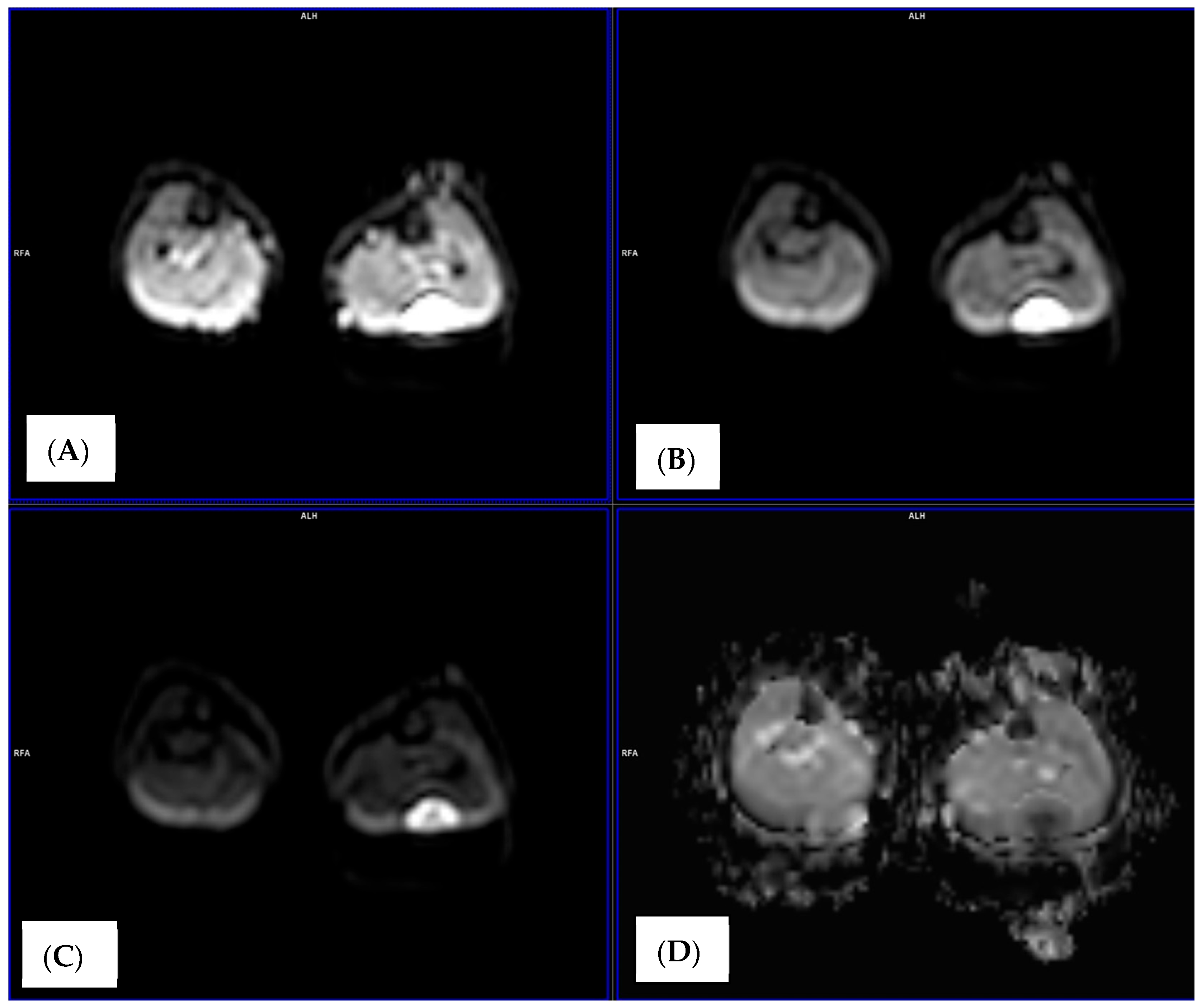 | No. | Whole Area ADC Value (×10−3 mm2/s) | Whole Area rADC Value (×10−3 mm2/s) | Area with Lowest ADC Value (×10−3 mm2/s) | Area with Lowest rADC Value (×10−3 mm2/s) |