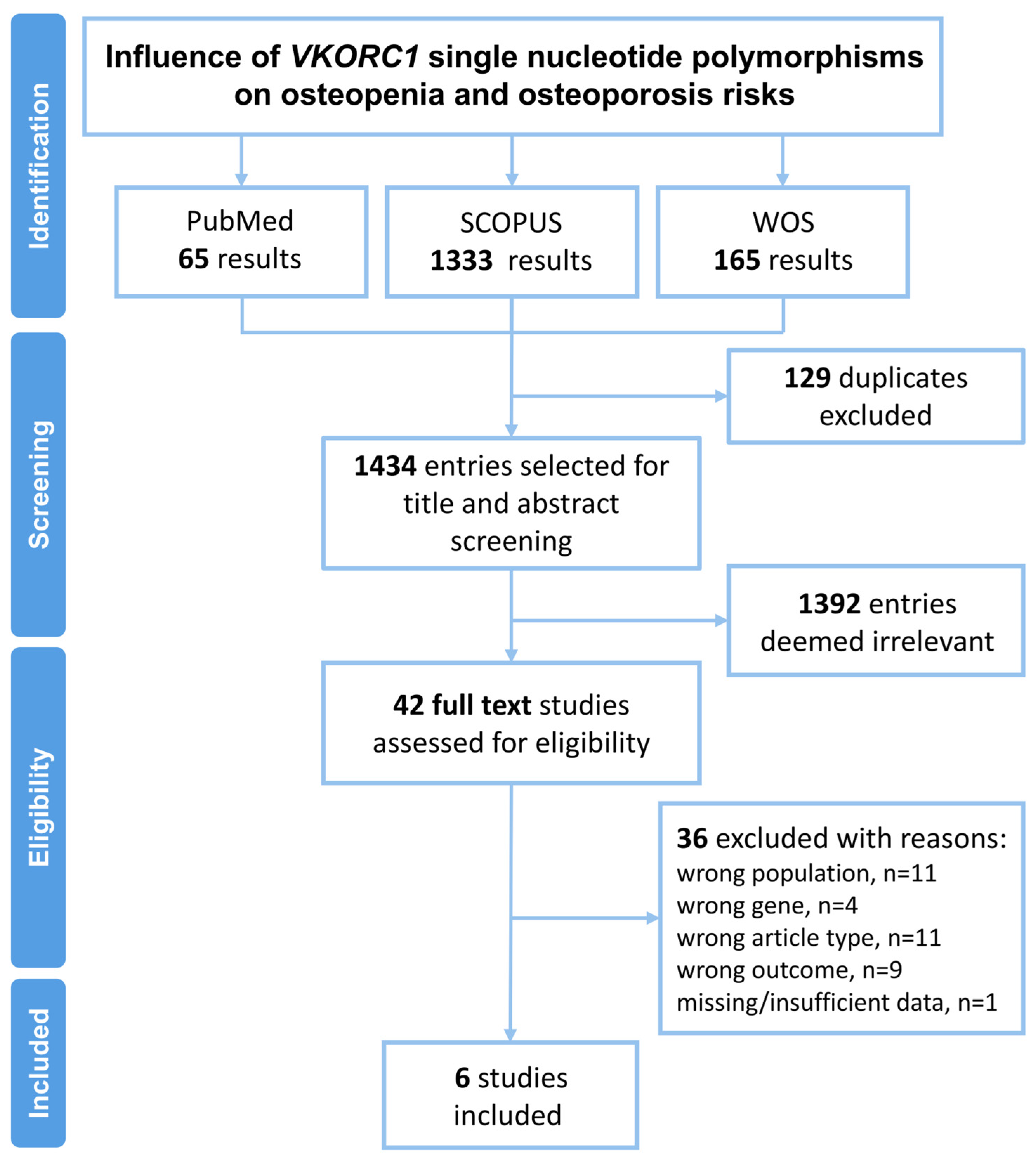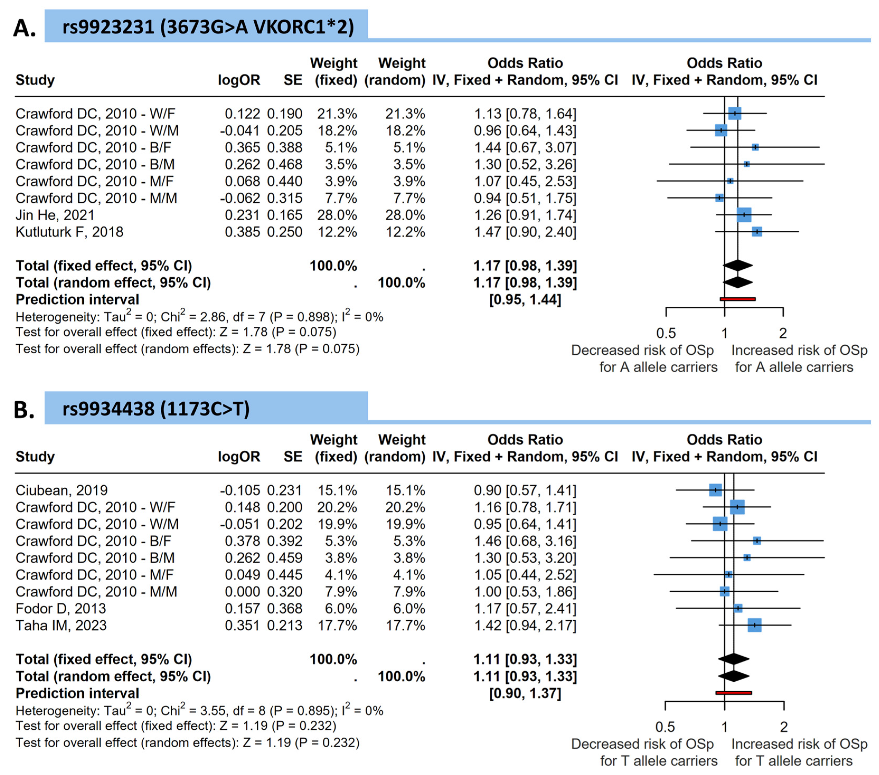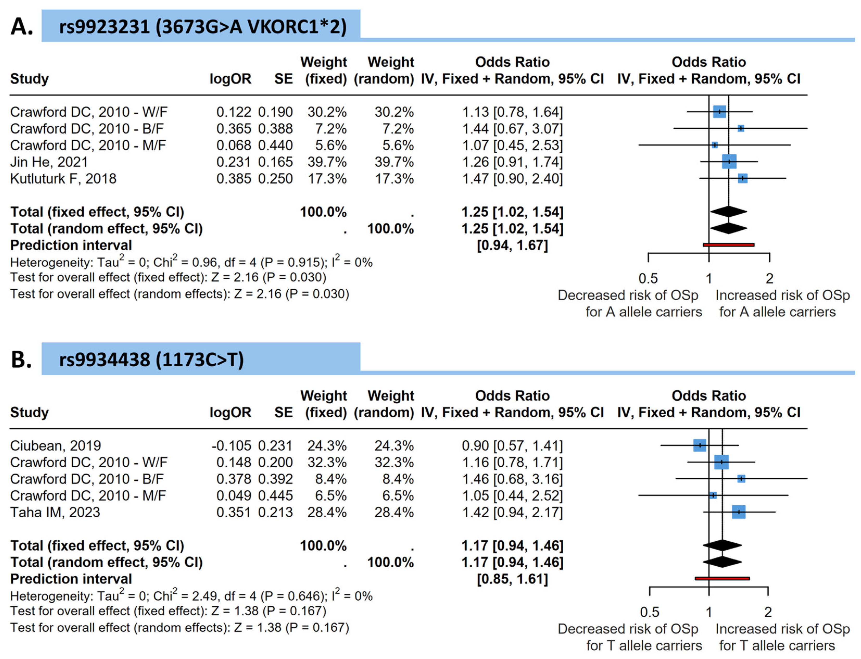 3.5. Pooled Meta-Analysis of the VKORC1 Risk Alleles Impact on the Osteopenia and Osteoporosis