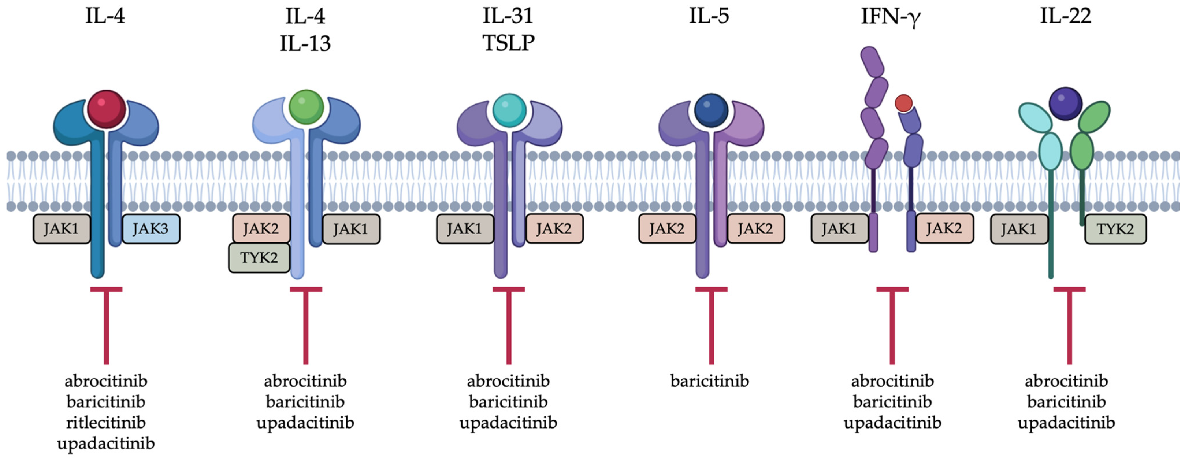 - Wachuku, C.I.; Barrera, T.; Jackson, T.; Sow, Y.; Mollanazar, N.; Taylor, S.C. Upadacitinib as a Treatment for Chronic Pruritus Secondary to Polycythemia Vera after Failure with Dupilumab. JAAD Case Rep. 2023, 35, 87–89. [Google Scholar] [CrossRef]