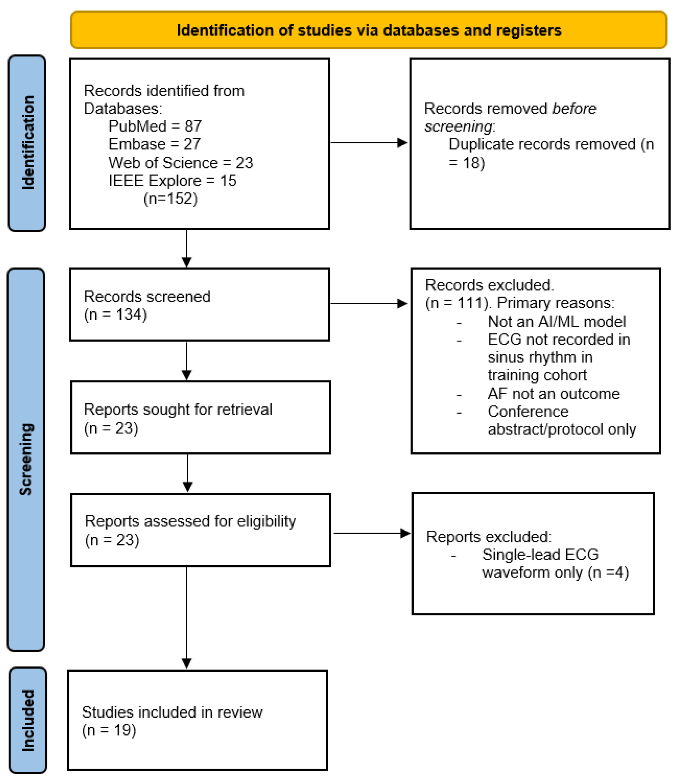 - Index test/intervention: Any AI or machine learning model (e.g., CNN, DNN…) trained on and applied to ECG data (raw signals or ECG images).