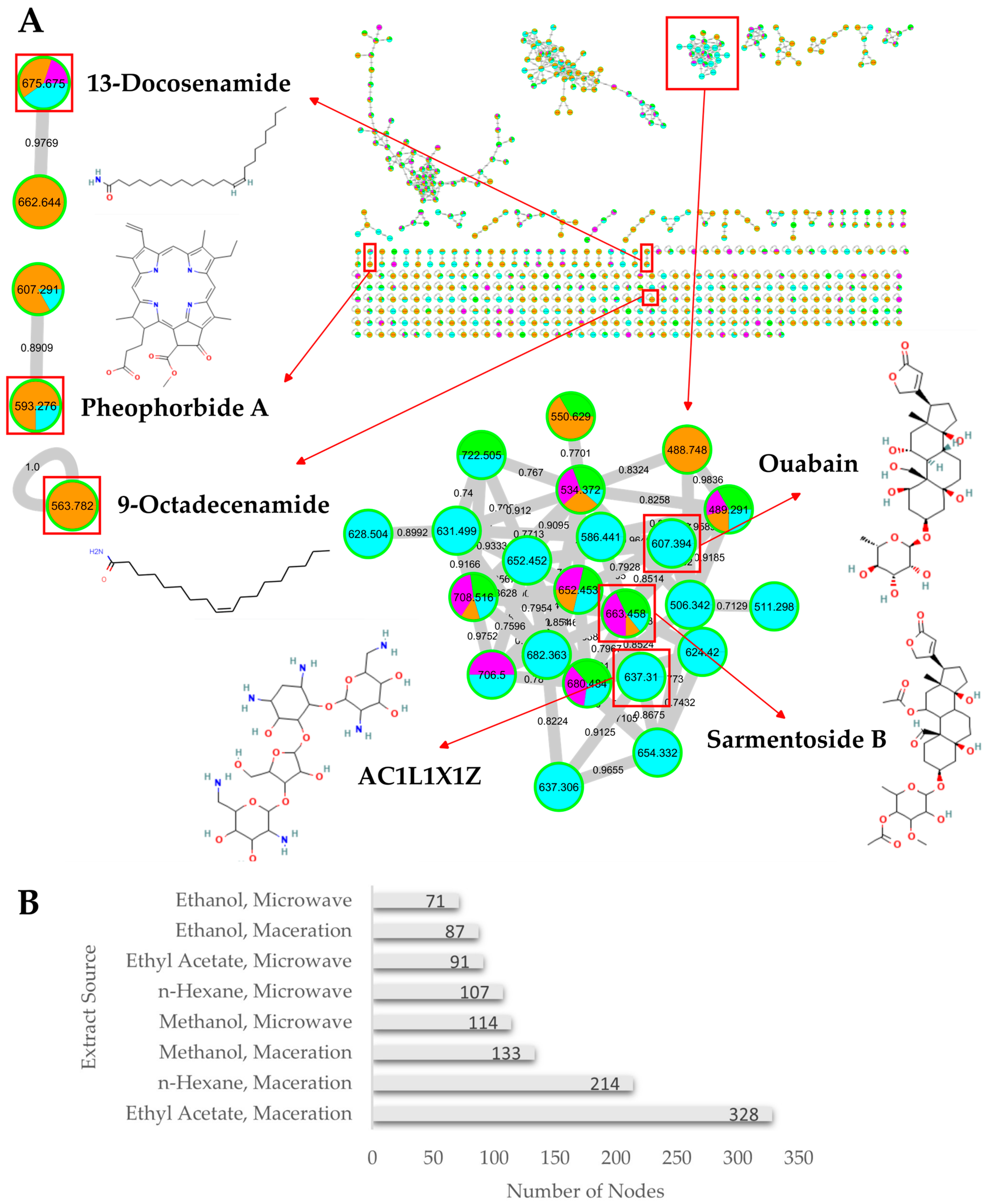 - Wang, M.; Carver, J.J.; Phelan, V.V.; Sanchez, L.M.; Garg, N.; Peng, Y.; Nguyen, D.D.; Watrous, J.; Kapono, C.A.; Luzzatto-Knaan, T.; et al. Sharing and Community Curation of Mass Spectrometry Data with Global Natural Products Social Molecular Networking. Nat. Biotechnol. 2016, 34, 828–837. [Google Scholar] [CrossRef] [PubMed]