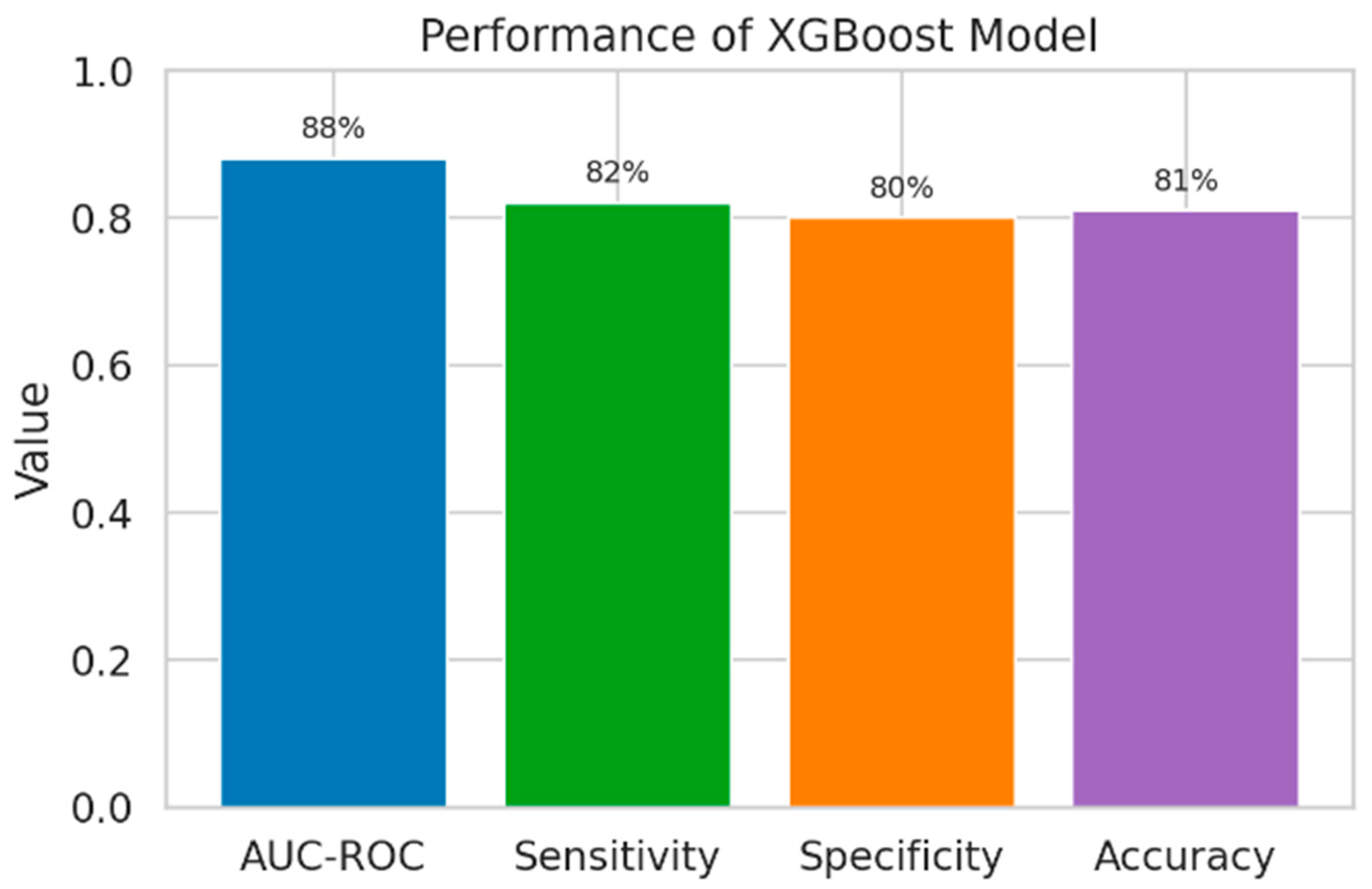 | XGBoost | 0.88 (0.83–0.92) | 82 | 80 | 81 | 0.005 |