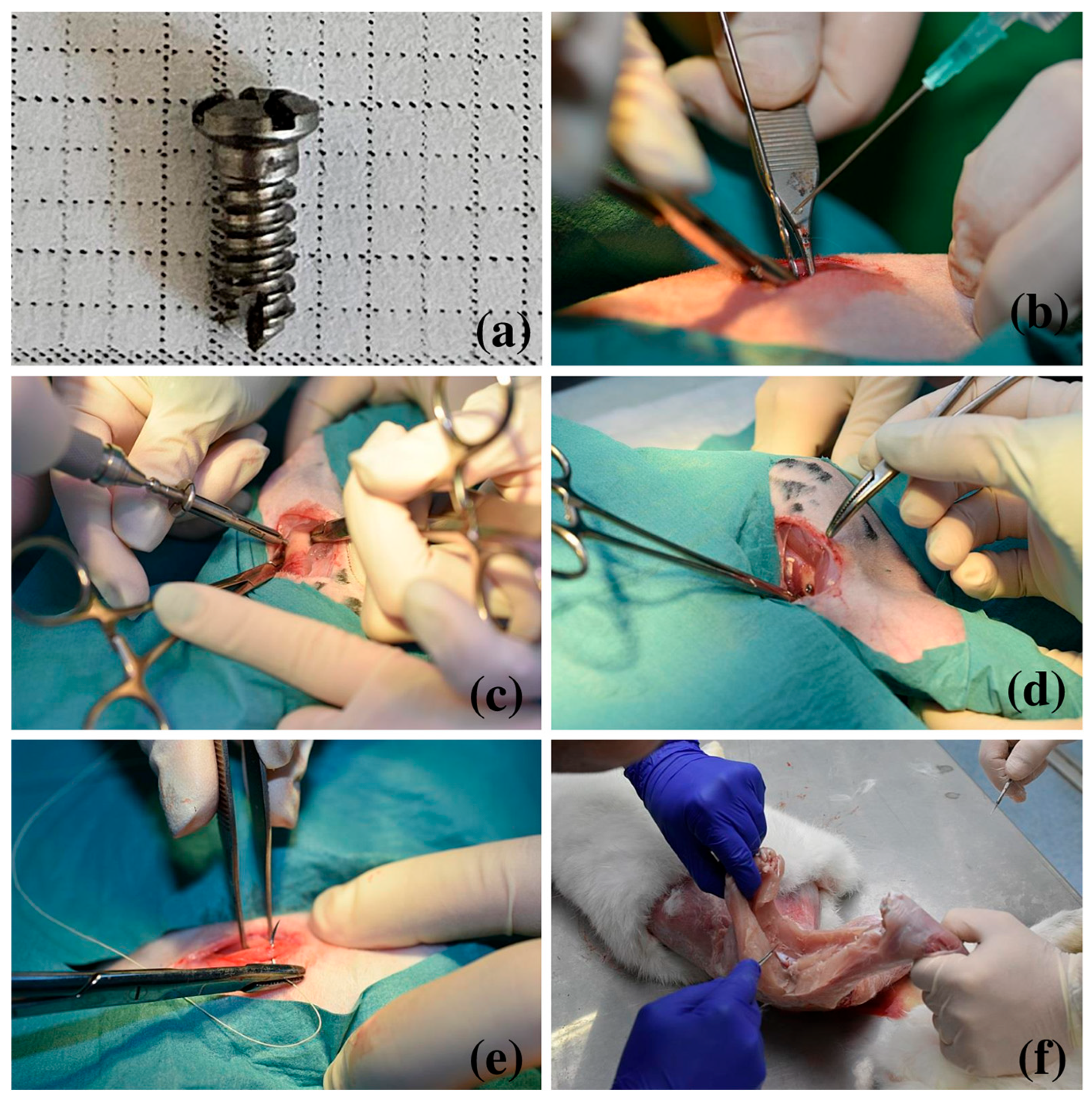 - Duma, V.; Gal, A.F.; Rus, V.; Matei-Latiu, M.C.; Rațiu, C.A.; Alexandru, B.C.; Latiu, C.; Martonos, C.; Oană, L.I. Comparative assessment of contact osteogenesis at the titanium implant-bone junction in male rabbits with dissimilar femoral defects. Int. J. Morphol. 2023, 41, 1317–1322. Available online: https://www.scielo.cl/pdf/ijmorphol/v41n5/0717-9502-ijmorphol-41-05-1317.pdf (accessed on 28 November 2025). [CrossRef]