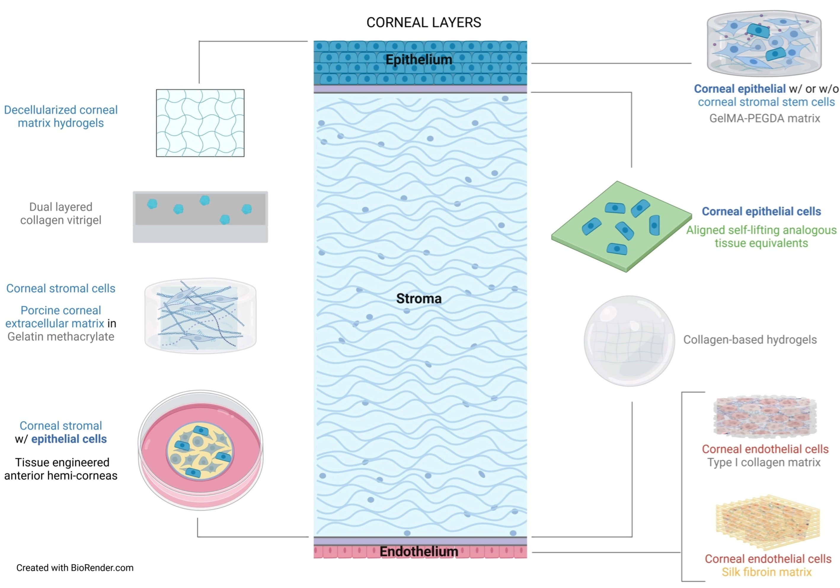 - Balters, L.; Reichl, S. 3D bioprinting of corneal models: A review of the current state and future outlook. J. Tissue Eng. 2023, 14, 20417314231197793. [Google Scholar] [CrossRef]