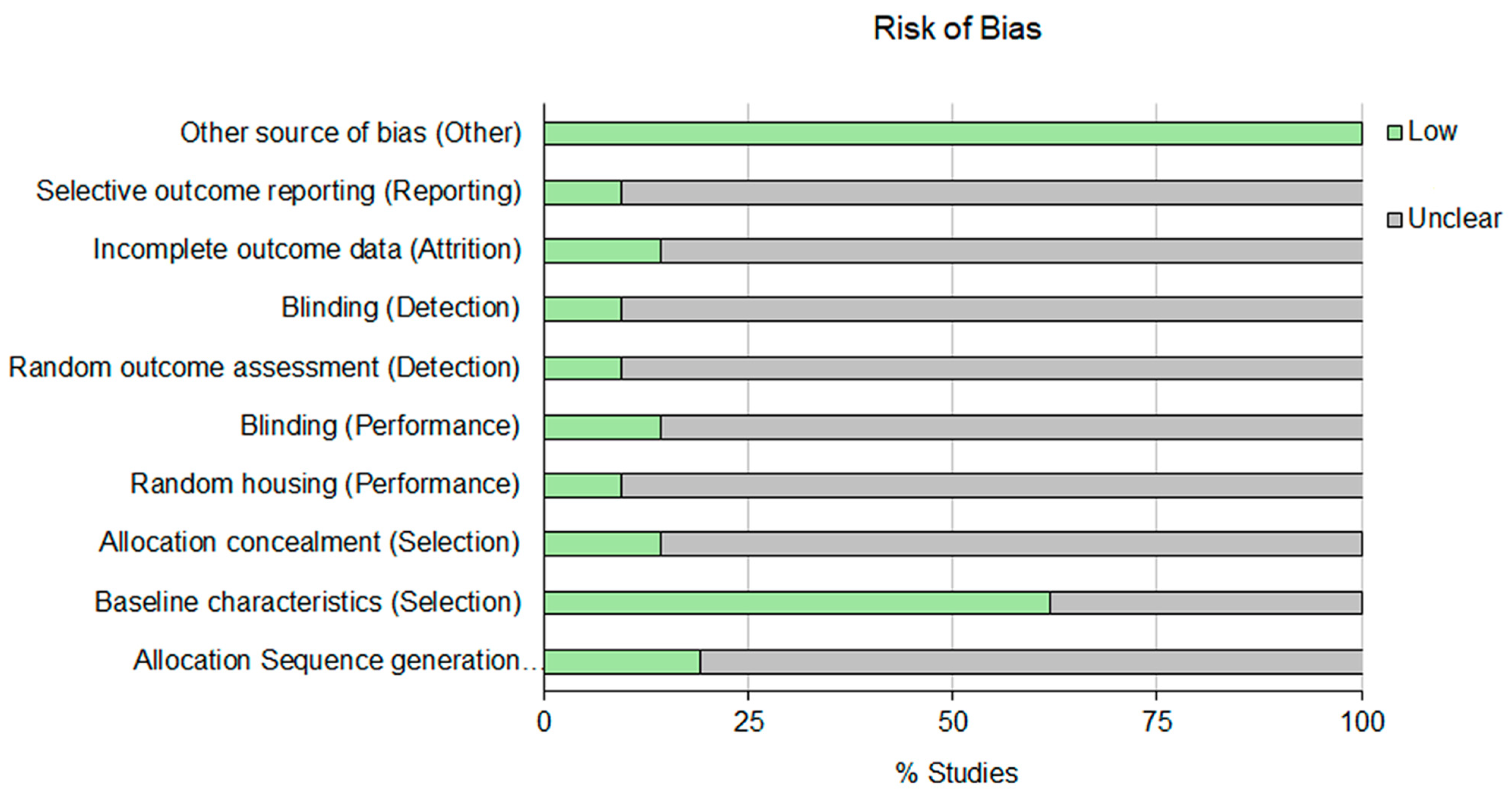 - Hooijmans, C.R.; Rovers, M.M.; de Vries, R.B.; Leenaars, M.; Ritskes-Hoitinga, M.; Langendam, M.W. SYRCLE’s risk of bias tool for animal studies. BMC Med. Res. Methodol. 2014, 14, 43. [Google Scholar] [CrossRef] [PubMed]