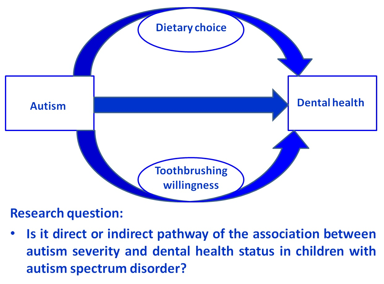 Diet quality and toothbrushing willingness play a mediating role in the relationship between ASD and dental health; therefore, it was important to assess each of their relationships with ASD severity.